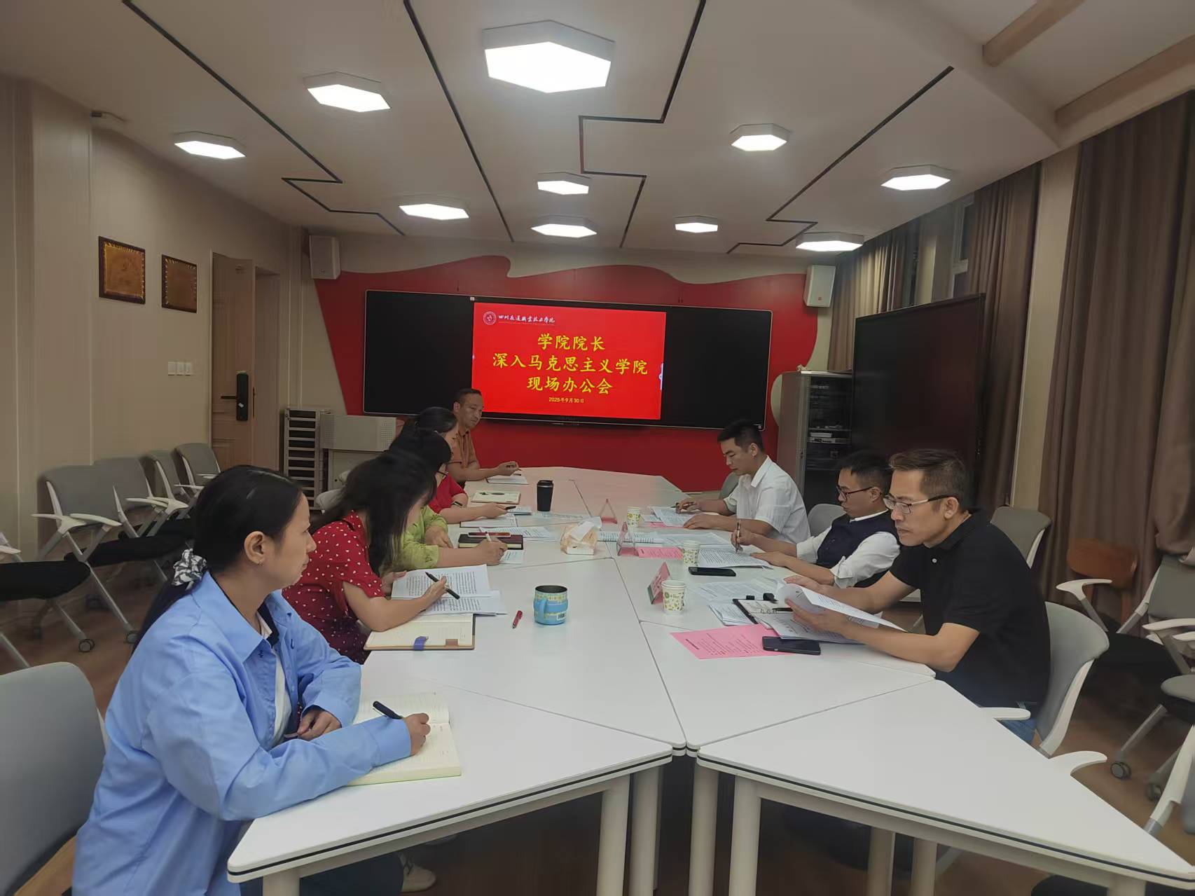 听取汇报后,陈斌院长一行和与参会人员展开了全面深入的研讨、交流。重点对大思政格局建设、特色马院建设、教改科研、思政课教学质量提升、研究平台申报等方面进行了深入分析。