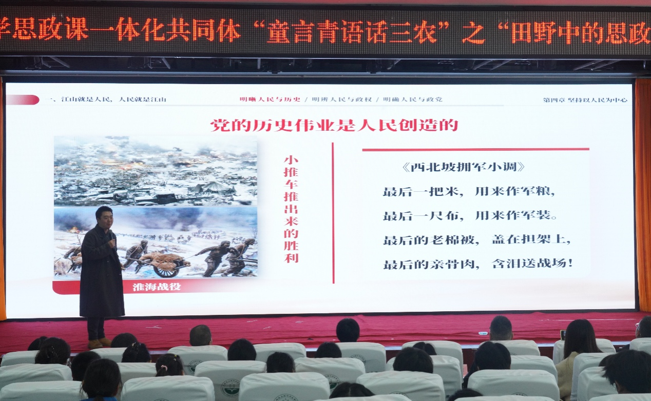 成都农业科技职业学院张贤杰老师则聚焦“习近平新时代中国特色社会主义思想概论”课程第四章《以人民为中心》,开展专题教学展示。他结合乡村振兴一线的生动实践案例,深入剖析了以人民为中心的发展思想在“三农”领域的具体实践成果,清晰阐释了农业现代化、农村振兴与农民富裕之间的内在逻辑关联。