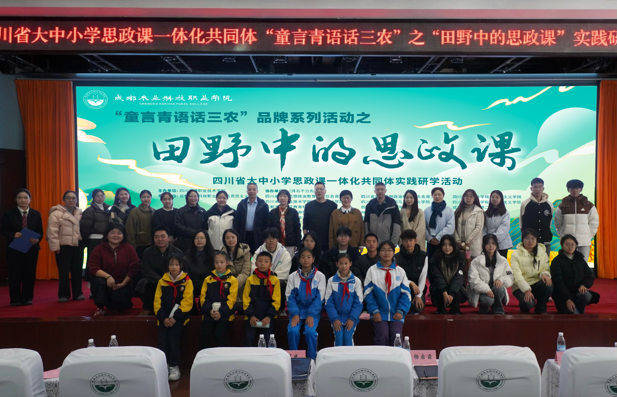 为深入推进大中小学思政课一体化改革创新,落实“开门办思政课”的育人要求,2025年11月27日下午,由我校主办、成都农业科技职业学院马克思主义学院承办、共同体成员单位及相关名师工作室协办的四川省大中小学思政课一体化共同体(以下简称“共同体”)“童言青语话三农”品牌系列活动之“田野中的思政课”实践研学活动圆满落幕。来自13所共同体成员单位的师生代表齐聚一堂,打破传统课堂边界,从教室走向田野,在沉浸式实践中感悟“三农”发展脉动,探索大中小学思政课纵向衔接、横向贯通的实践路径,为思政课程筑牢实践育人根基。